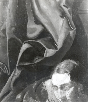work on the drapery and later he cut the canvas down to a smaller size with the hope that some portion of it