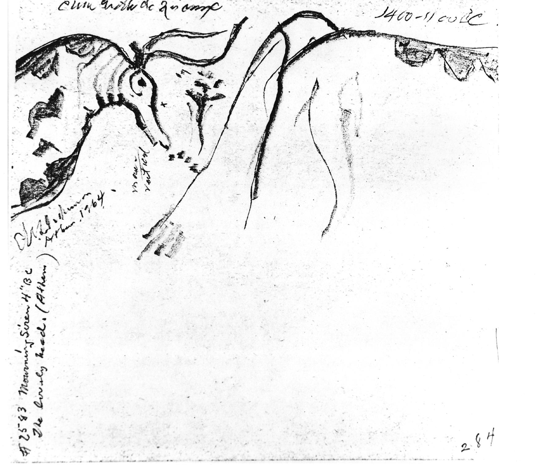 Inscribed lower left side: "#2583 Mourning Siren 4" BC / The lovely [or lively] head, (Athens)"