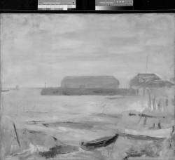 Painted in Provincetown, MA, June 23 (journal). Painted in one hour in the rain, morning of the same day as "Church Tower," 1928, painted in the afternoon.Provenance