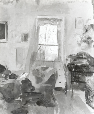 Painted in Sheldrake, NY, February 10, (journal), in living room of Dickinson family cottage. ED note: "A good portrait of the corner of the room looking down the lake [Cayuga] with everything showing as was."Provenance