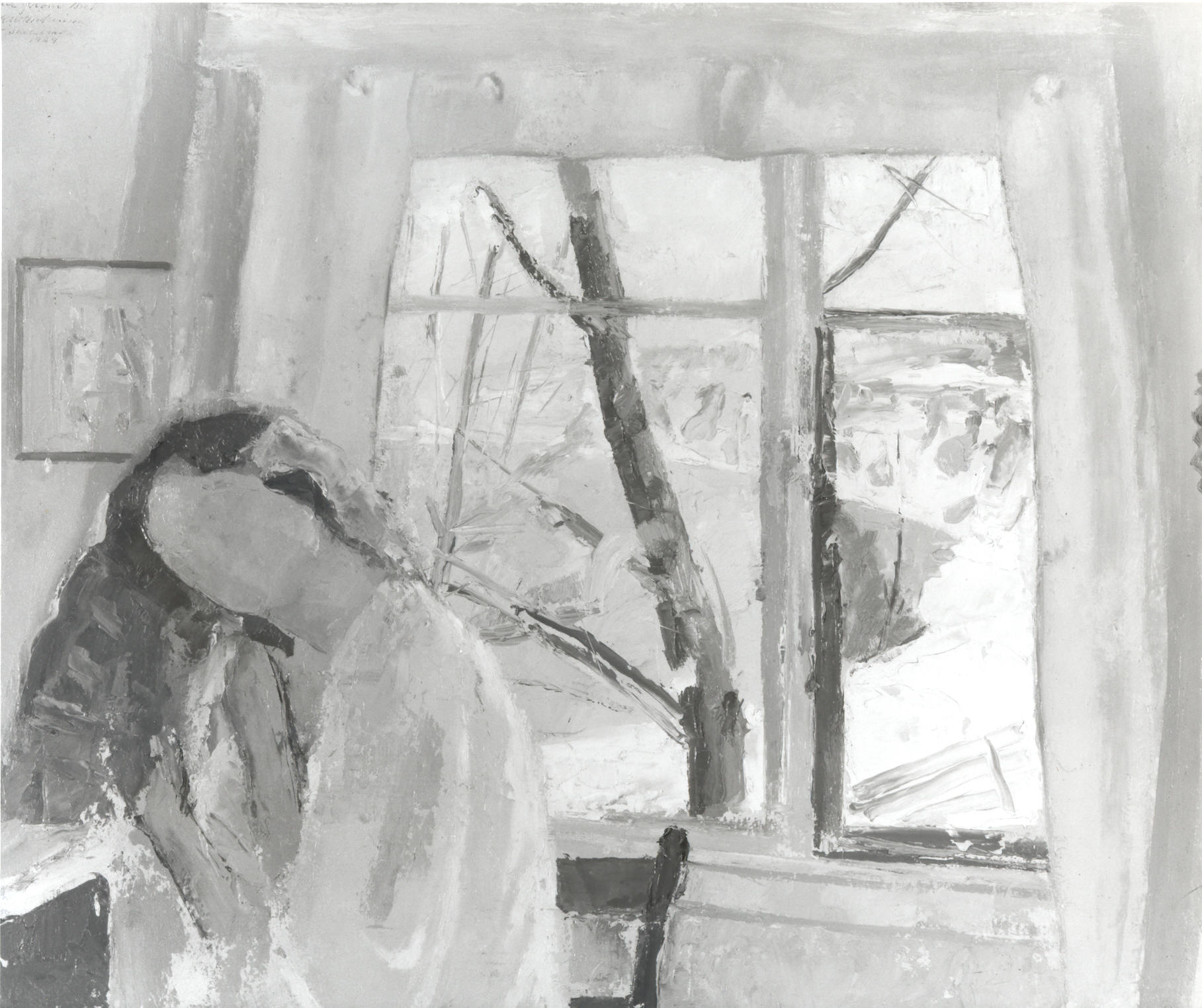Painted in Sheldrake, NY, February 27, (journal) upstairs in Dickinson family cottage. Seen out the window are trees, snow, cliffs and Cayuga Lake.Provenance