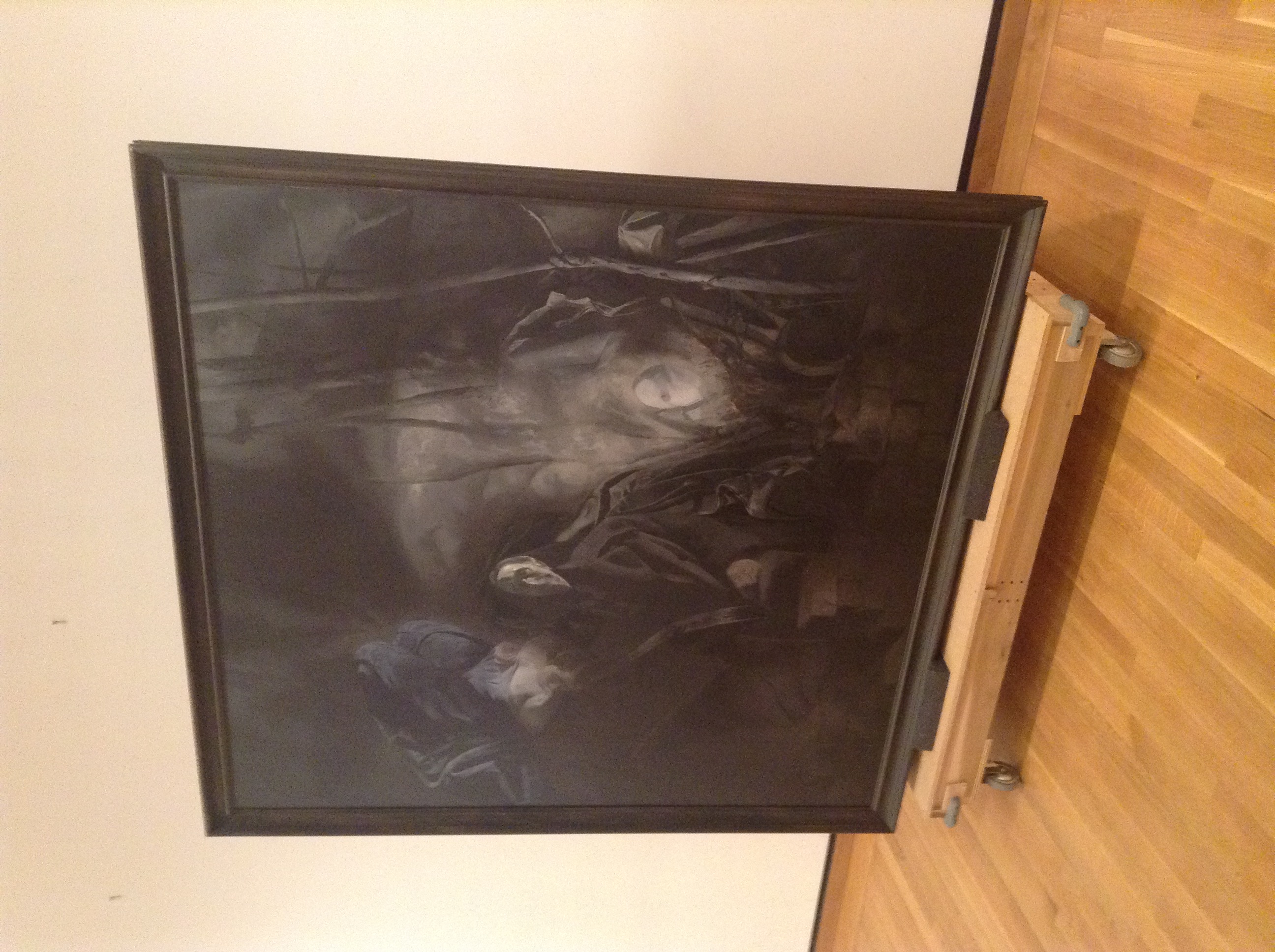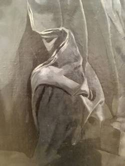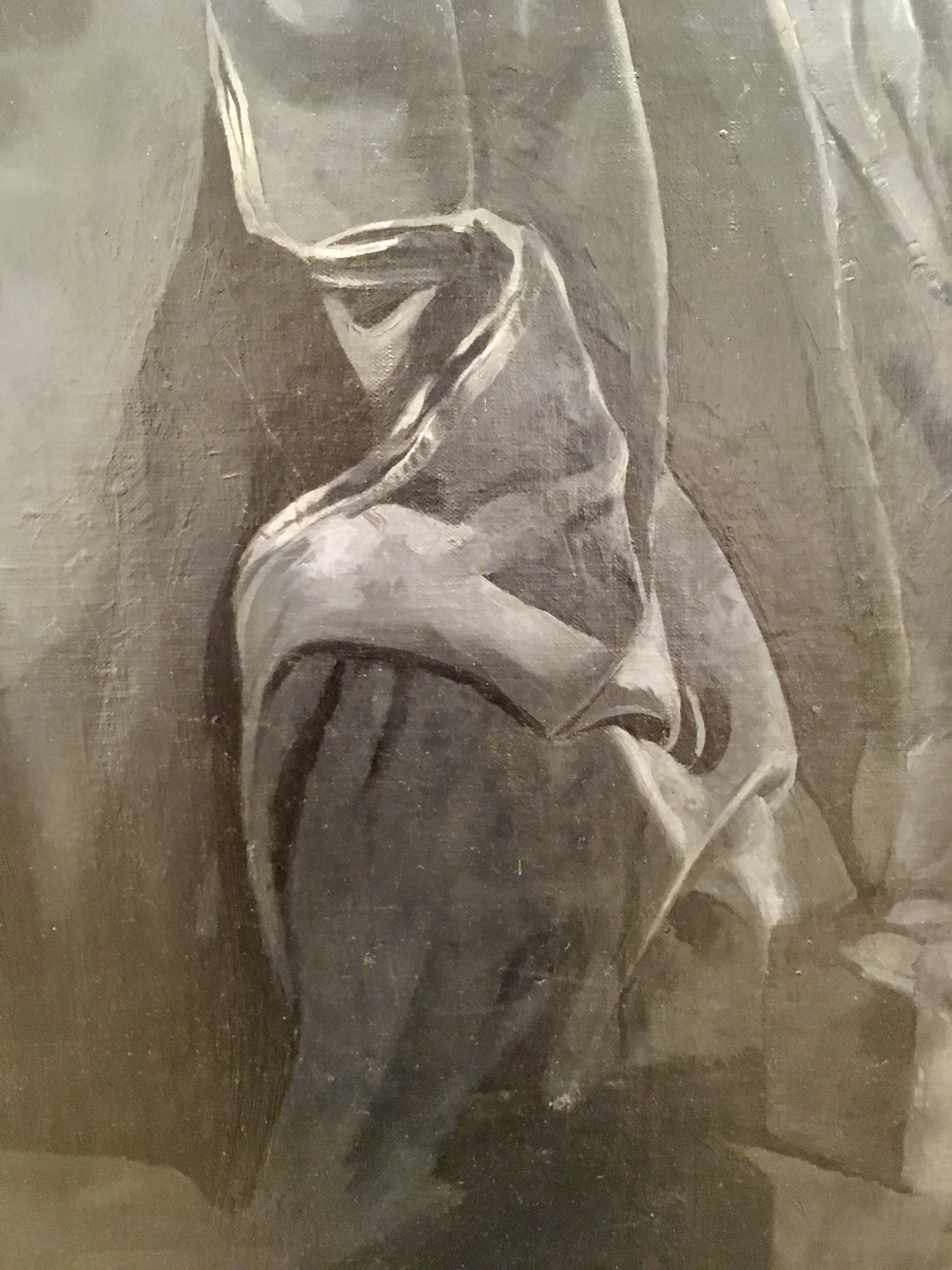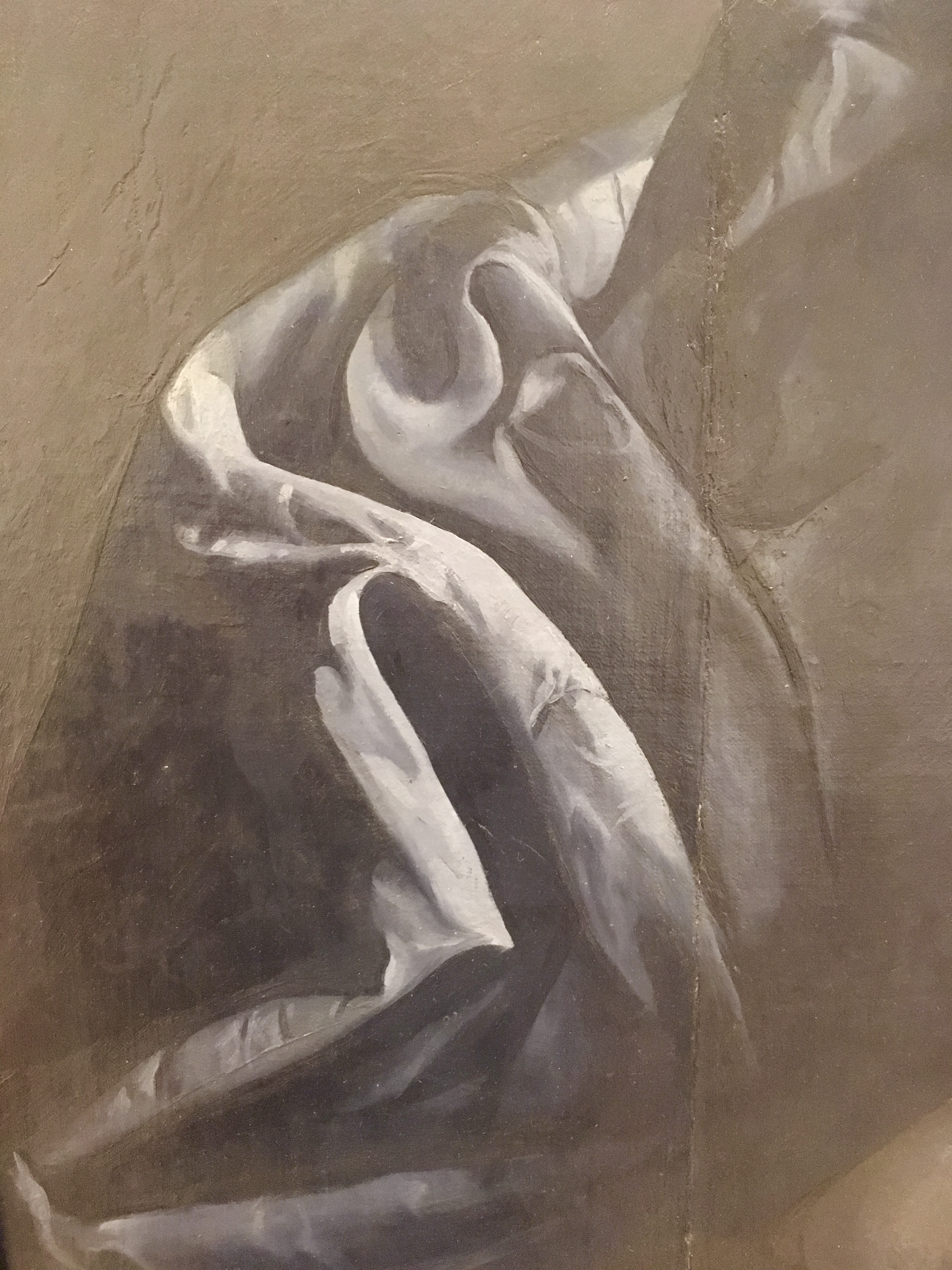 To EHS, May 13, 1929, "The new one, 63 x 72 I stretched before went away last fall. One figure so far, probably two." To EHS November 6, 1929, "Large canvas now doing superior to all previous . . . " To EHS, February 11, 1930, "The drapery you gave me is exactly what I now need . . . " To EHS, March 21, 1930, "the fine box with the splendid draperies & wools - all usefull to a high degree. These curtains fill a long felt need - " To EHS, January 10, 1932, "I am 200 sittings down on the 6 x 7, on the 3rd figure and find increased scope."