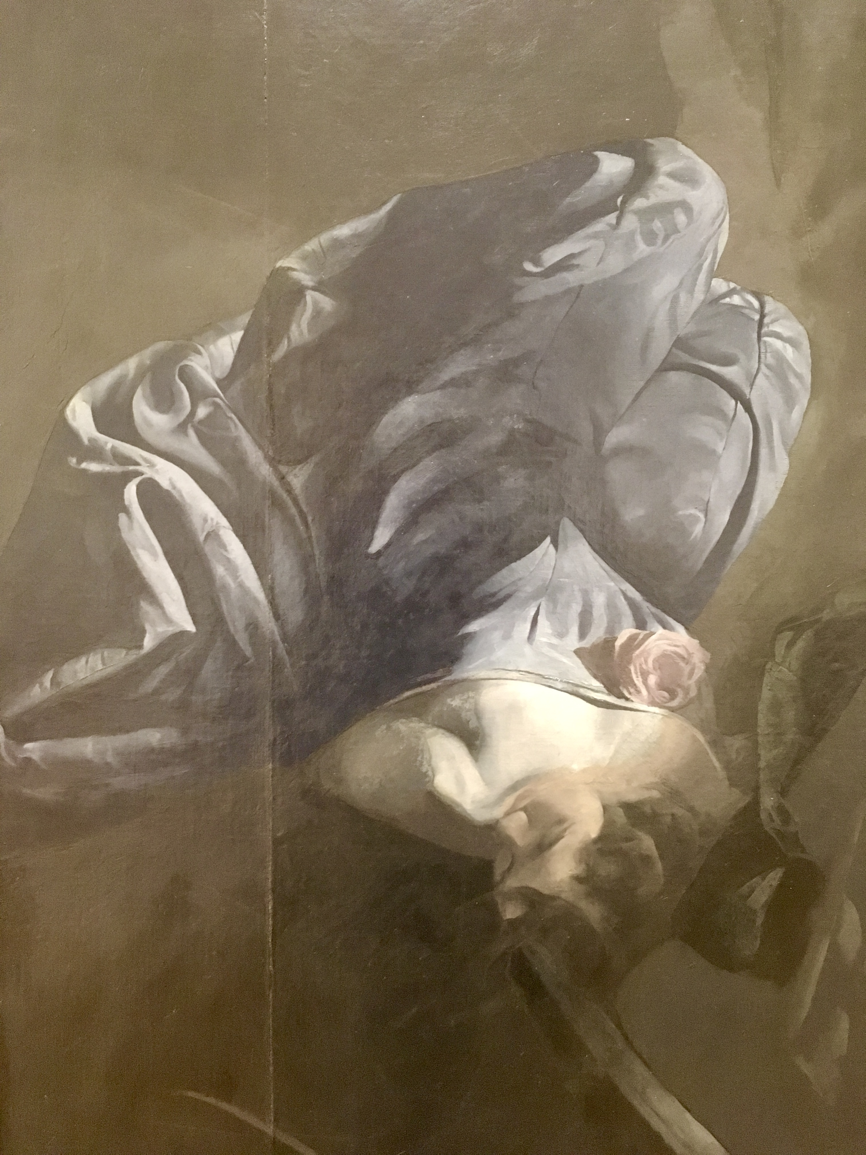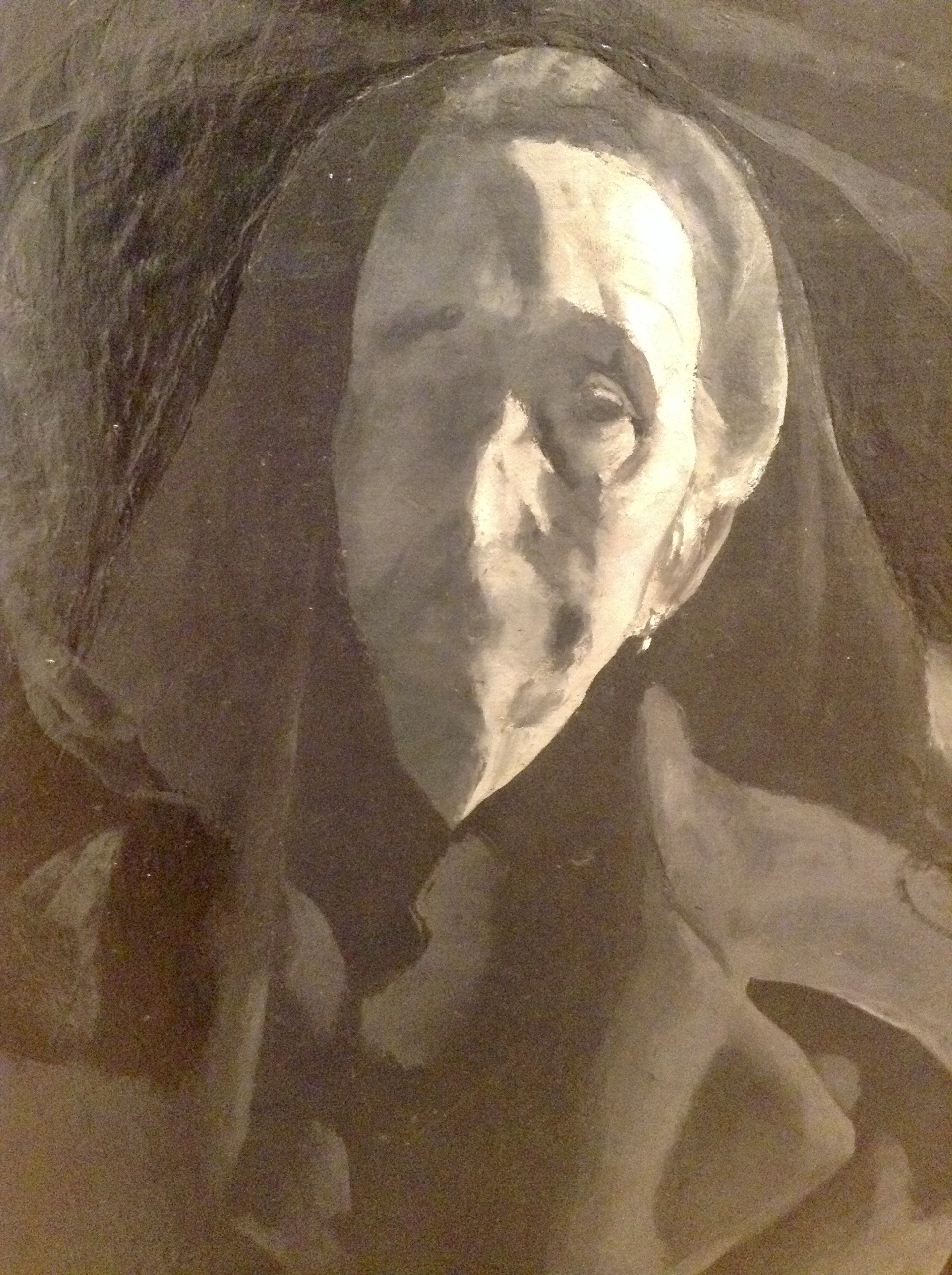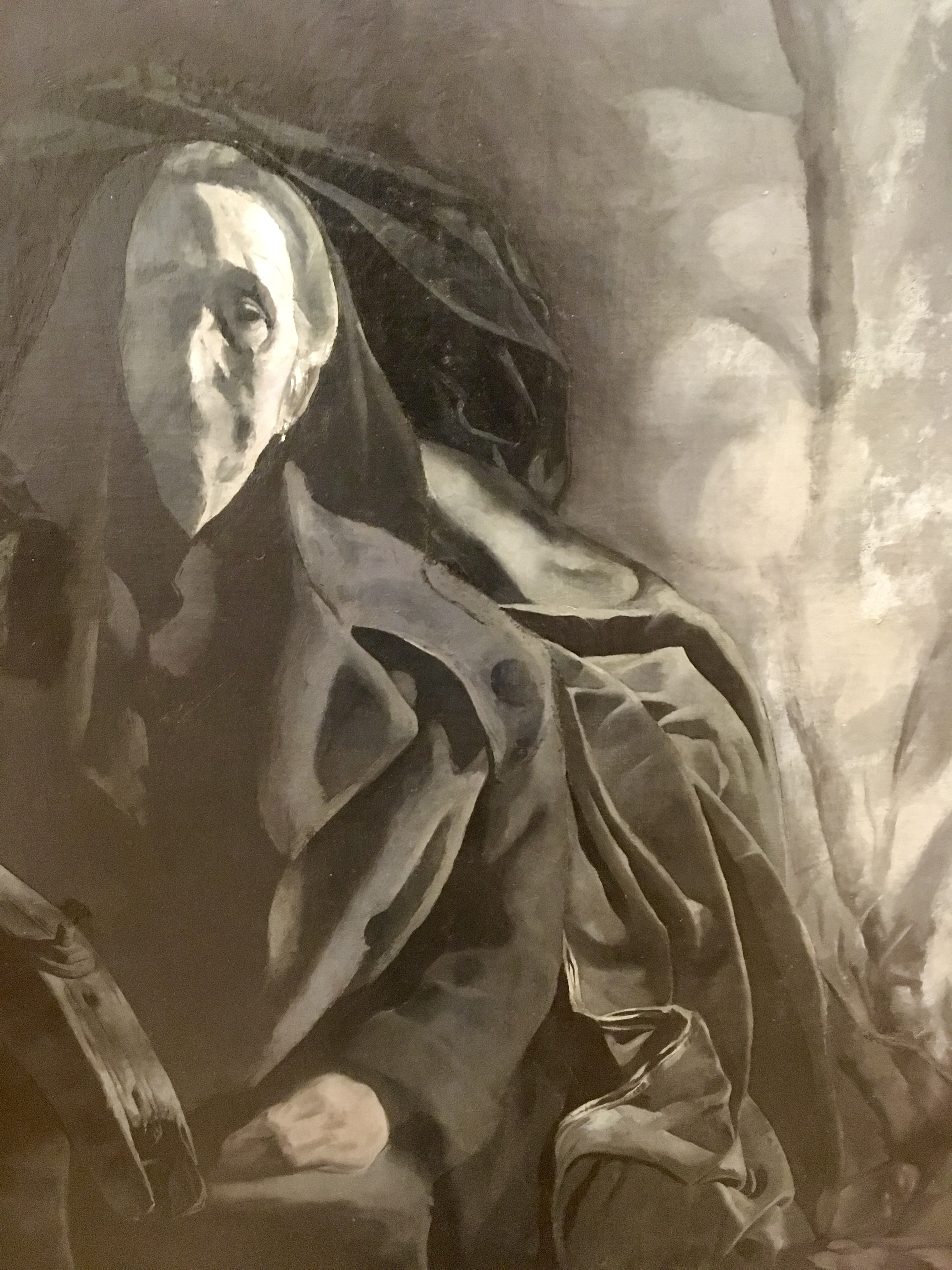 To EHS, May 13, 1929, "The new one, 63 x 72 I stretched before went away last fall. One figure so far, probably two." To EHS November 6, 1929, "Large canvas now doing superior to all previous . . . " To EHS, February 11, 1930, "The drapery you gave me is exactly what I now need . . . " To EHS, March 21, 1930, "the fine box with the splendid draperies & wools - all usefull to a high degree. These curtains fill a long felt need - " To EHS, January 10, 1932, "I am 200 sittings down on the 6 x 7, on the 3rd figure and find increased scope."