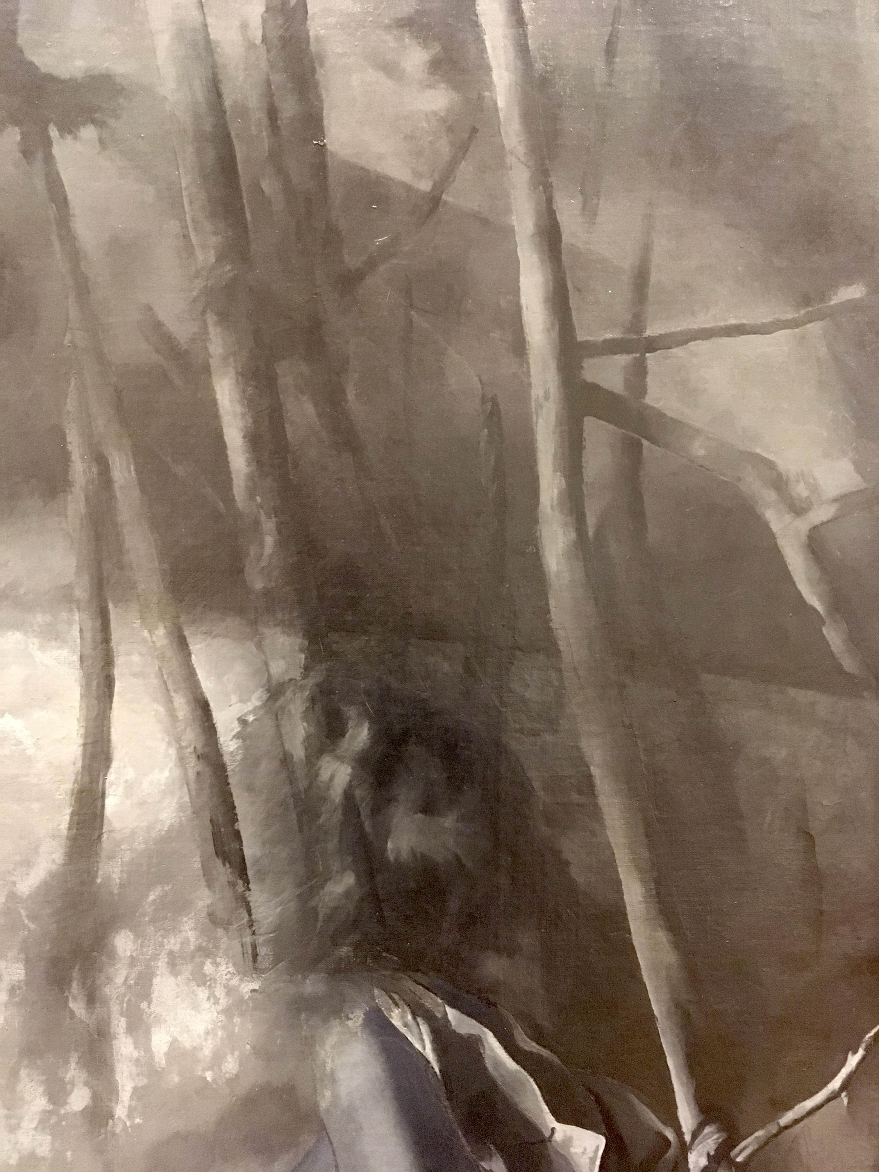 COH, 73:"You asked about the use of color in 'Woodland Scene.' The canvas is in full color as far as I am concerned. Not as varied and clear, bright, nameable in color as I would like to be able to do well with, but all of appear to be greys are done with the complete, full palette, and there's no more uniformity among them than there is amongst the primary colors --red, blue and yellow. They're different in that they 're adjusted very carefully." ED note, journal,May 4, 1961: referring to Woodland Scene, "light [comes] from R & L both"