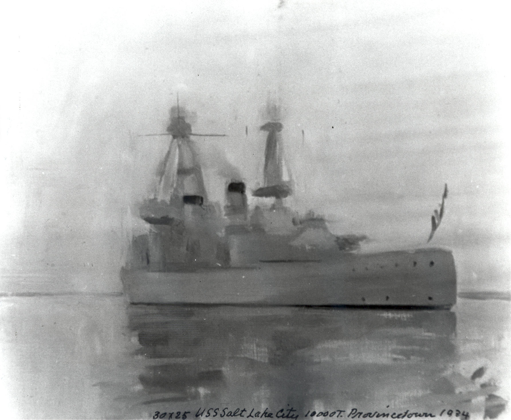 Painted in Provincetown, MA, July 29. See CR # . ED asked for and received from the captain of the Salt Lake City, (a heavy cruiser of 10,000 tons), a boat from which to paint her. He painted an hour until stopped by rain and then had lunch aboard, (journal). The Salt Lake City was sunk in the Pacific in 1945.Provenance