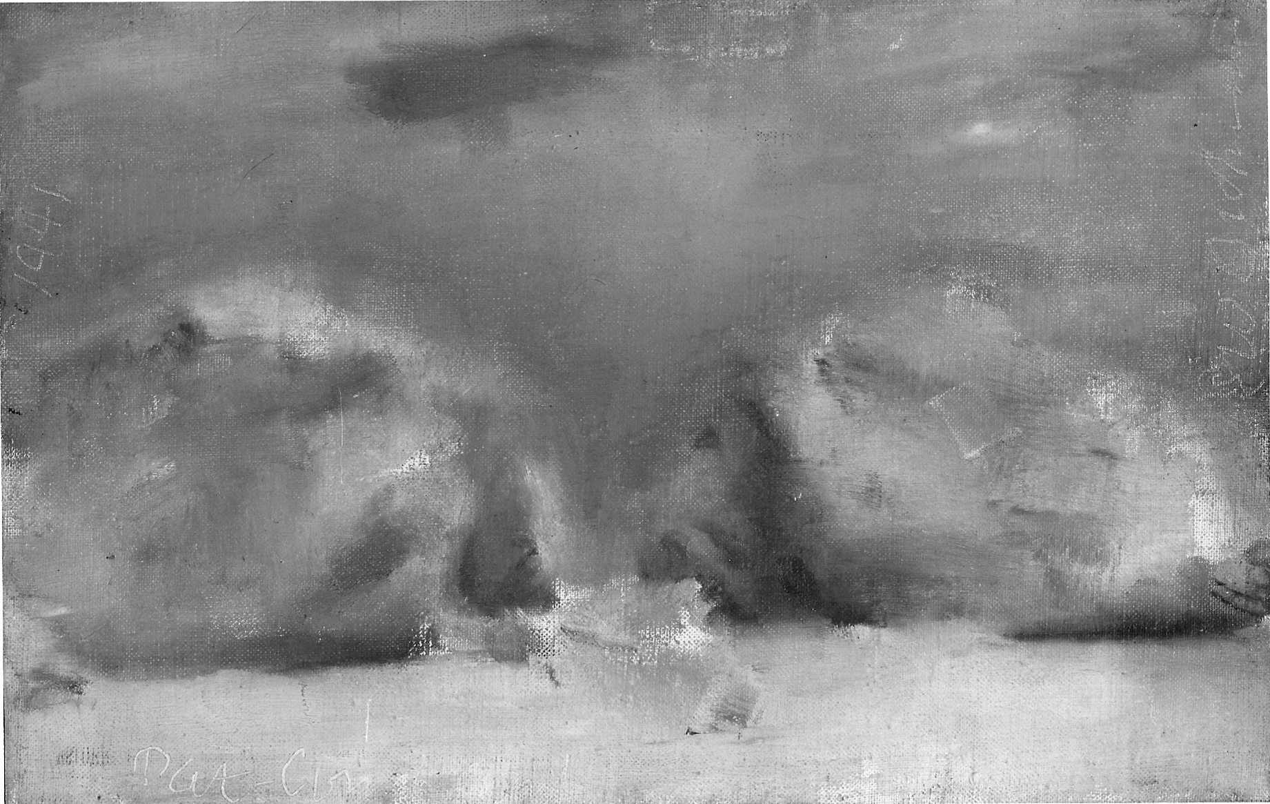 Painted in Brewster, MA, August 4 at Foster's Landing (journal). Rock on left is that painted July 21, "Great Boulder, Brewster", CR # .(journal). ED note: "Premier coup. Painted while waiting for Helen to take her music lesson at the Cape Cod Music School." The rocks are "erratic boulders," rocks left behind by the glacier as it receded after the Ice Age. They are abundant on Cape Cod and ED took great pleasure in them.Provenance