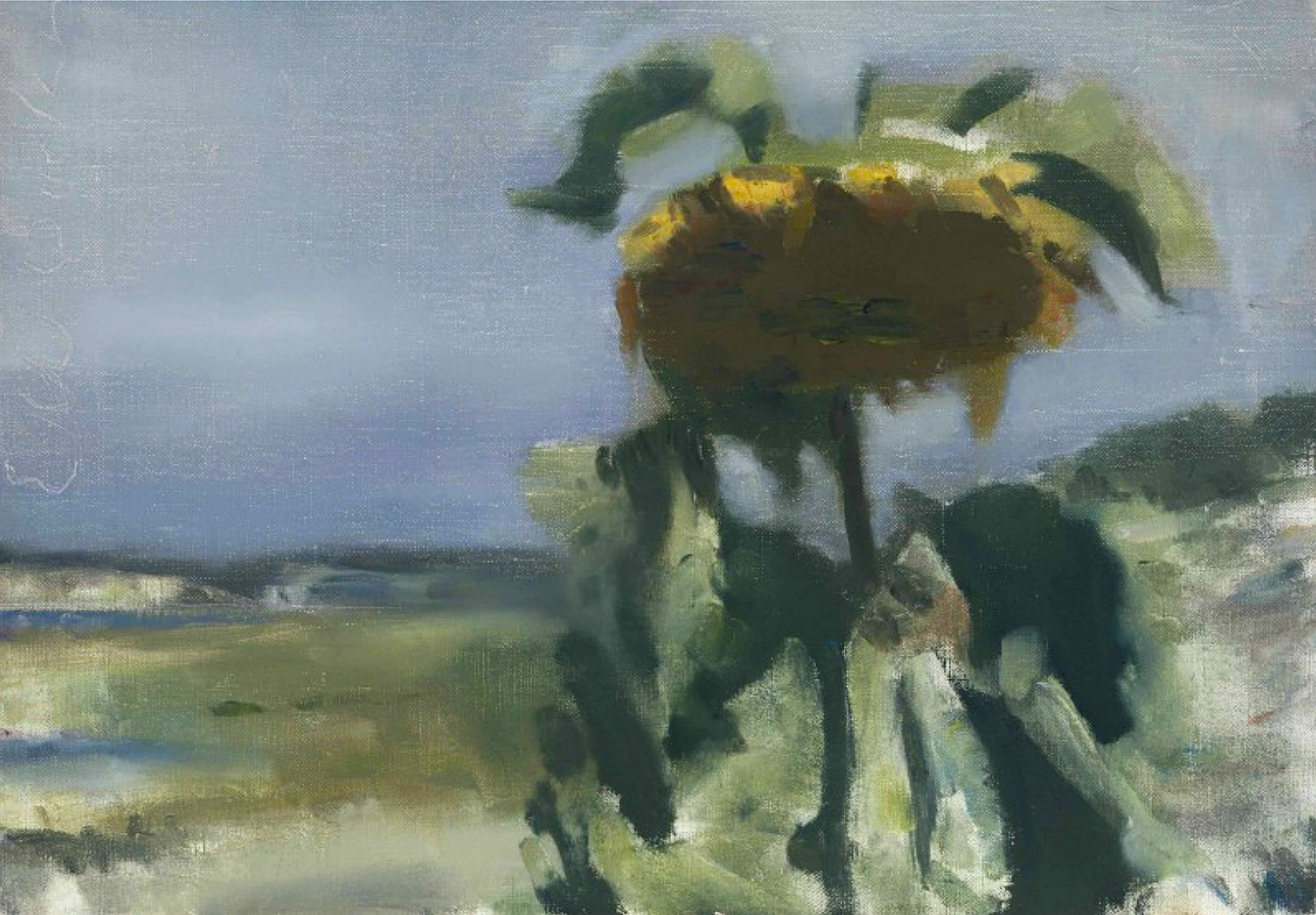 Painted in Wellfleet, MA, of sunflower by porch, 23 September (journal).Provenance