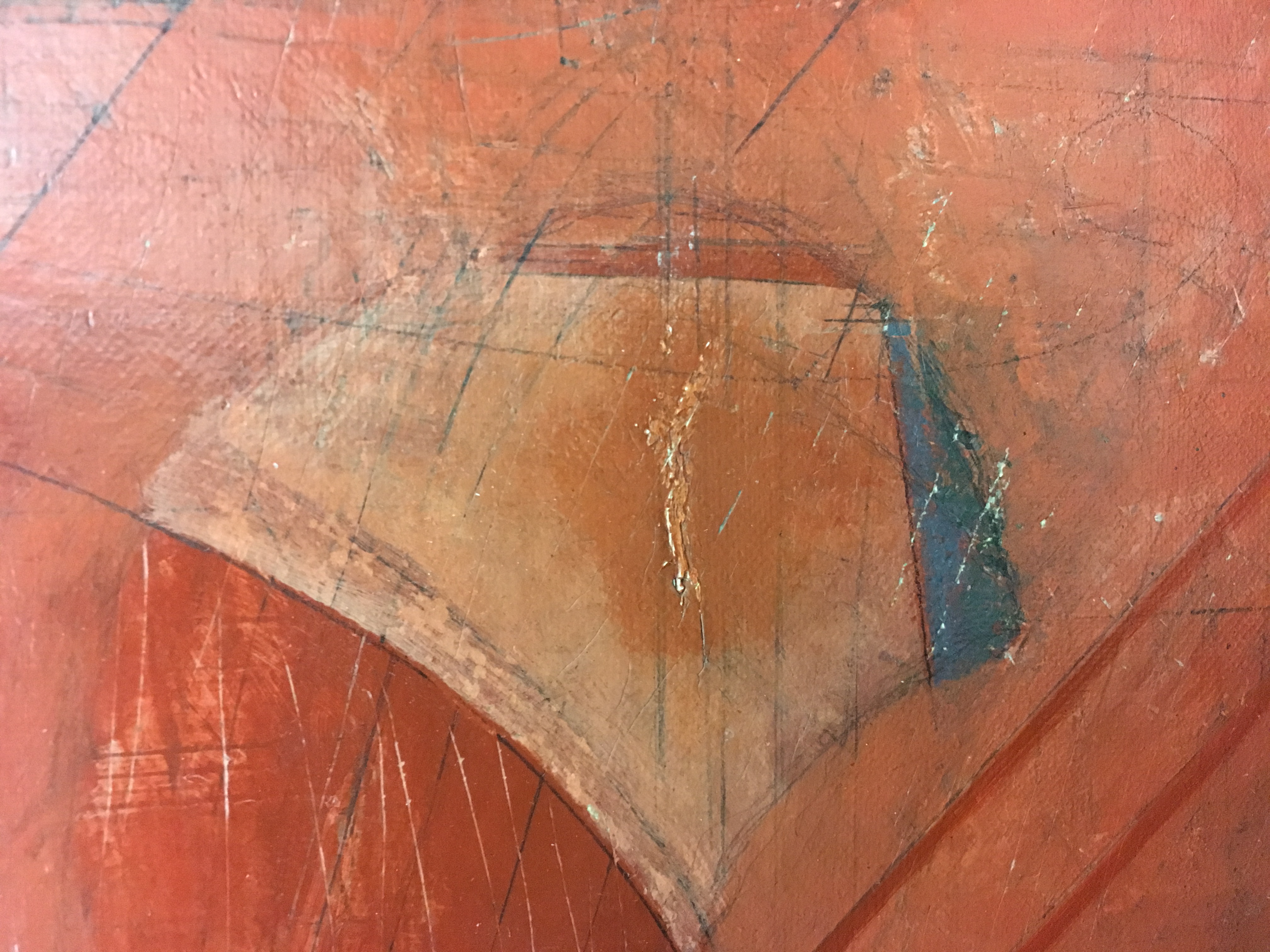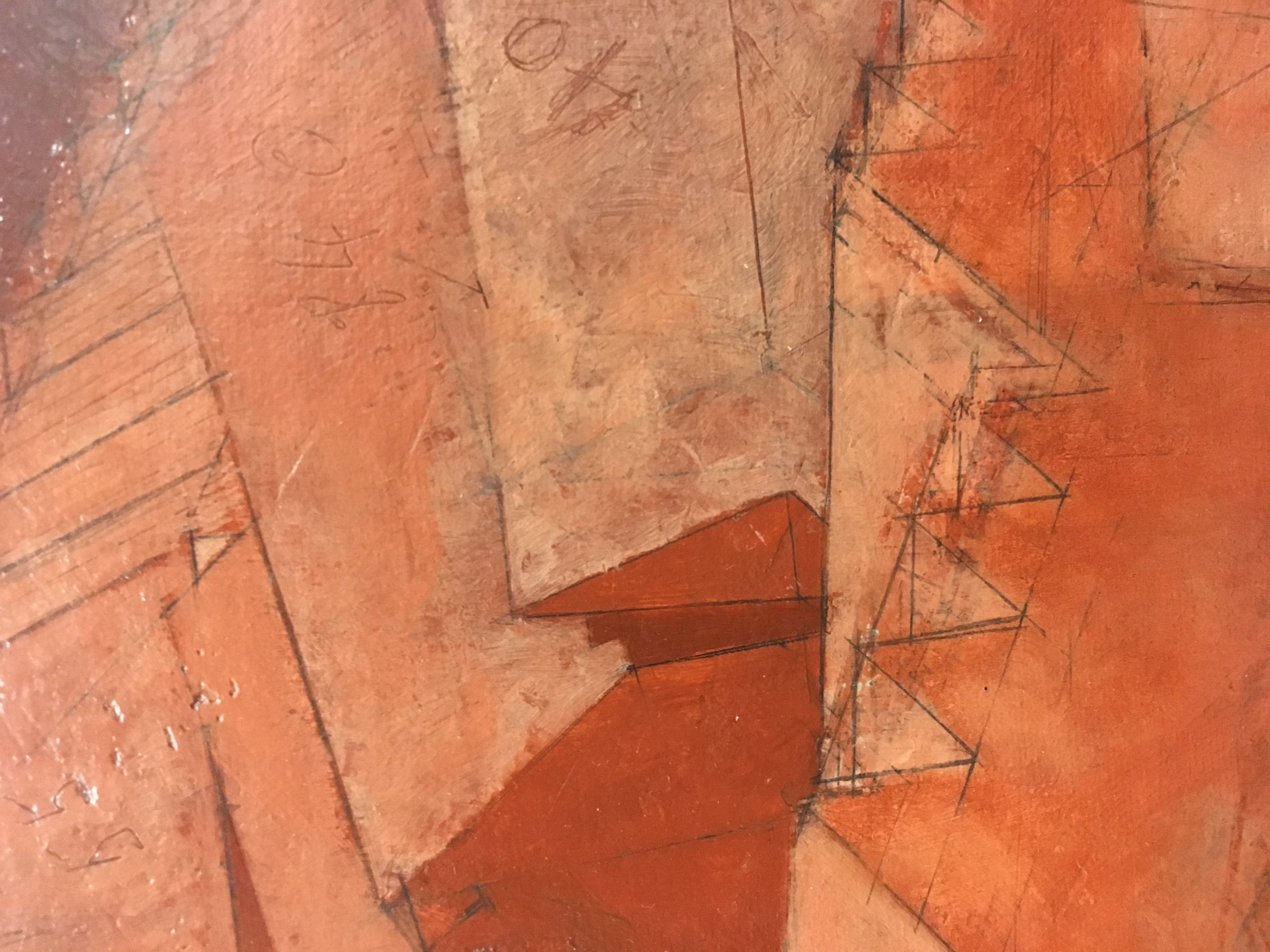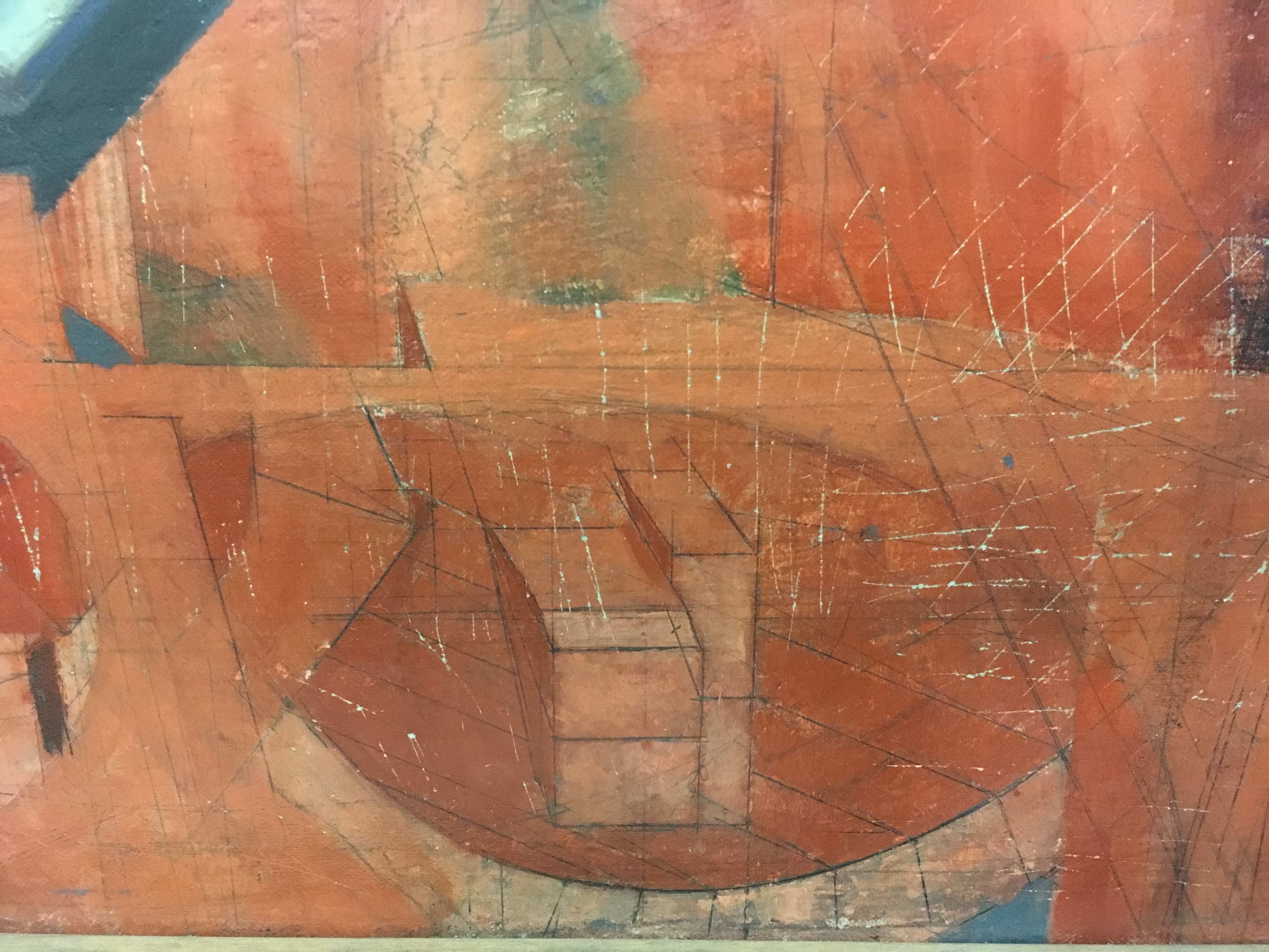 1948: To Tibi, April 27;"The heretofore undecided upon left side of my piece now has some thing indicated. (I have had things here before, a Roman brick wall - a town, streets etc - but they did not last)."