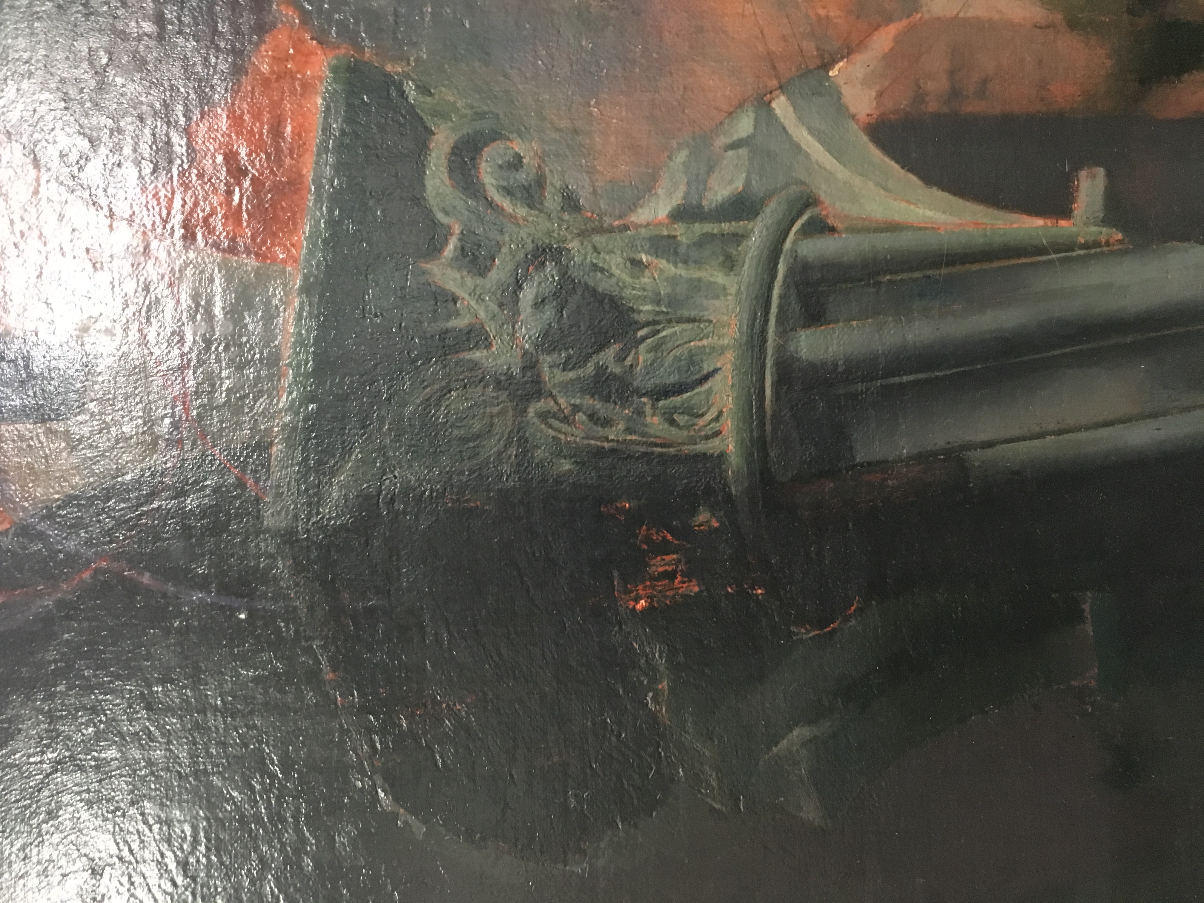FD note: "Brun rouge is the color that was used for painting Ruin at Daphne. Edwin liked this color and bought a considerable number of tubes with him when he returned from painting in France om 1938. The horse in the Daphne is from the frieze of the Parthenon."
