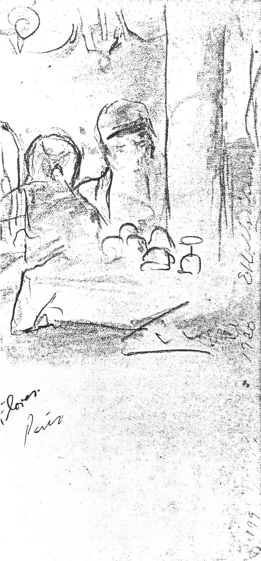 Drawn in Paris, France, on reverse of "A Couple, Concert Touche" 1919.Provenance