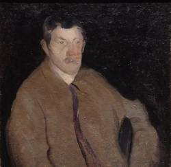 Painted in New York, NY. Journal, "Painted Roland [sic] and posed for Fisher." ED note: "Paul & I had a studio 4th floor at 25 E. 14th St. Quite a gay life." ED note: "A savage appearing portrait of an admirable artist." Several paintings said to be under this one, on reverse was a Provence landscape by Rohland, 1884-1953.Provenance